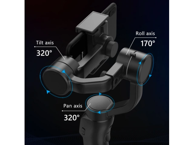 R: Significa que el gimbal compensa el movimiento en tres direcciones: inclinación (pitch), balanceo (roll) y paneo (yaw), garantizando una estabilización fluida y profesional de tu dispositivo.