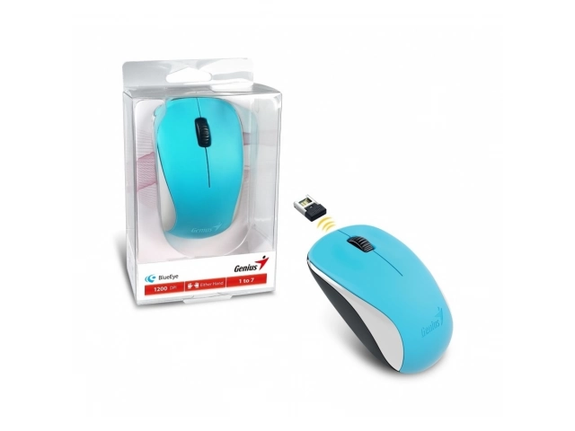 Mouse Genius NX 7000 Azul Mouse inalámbrico para PC Mouse azul óptico Mouse con receptor USB Mouse ambidiestro Mouse de 1200 DPI Accesorios Genius para computadora Mouse inalámbrico de 2.4 GHz Mouse cómodo para oficina Mouse plug and play