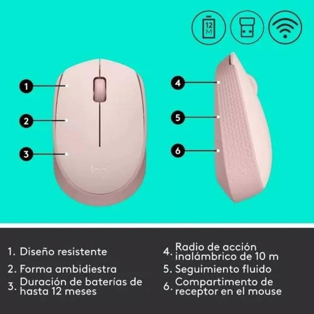 • Calidad y Durabilidad Logitech: Un mouse construido para el uso diario y para durar.