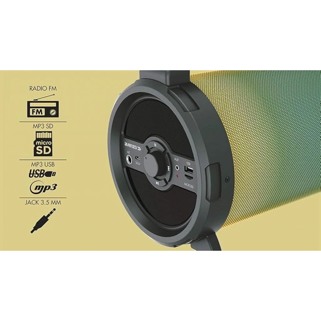 Lleva la fiesta a donde vayas con el Parlante Portátil Avenzo AV-SP3301B, la combinación perfecta de potencia, conectividad y autonomía para tu música.