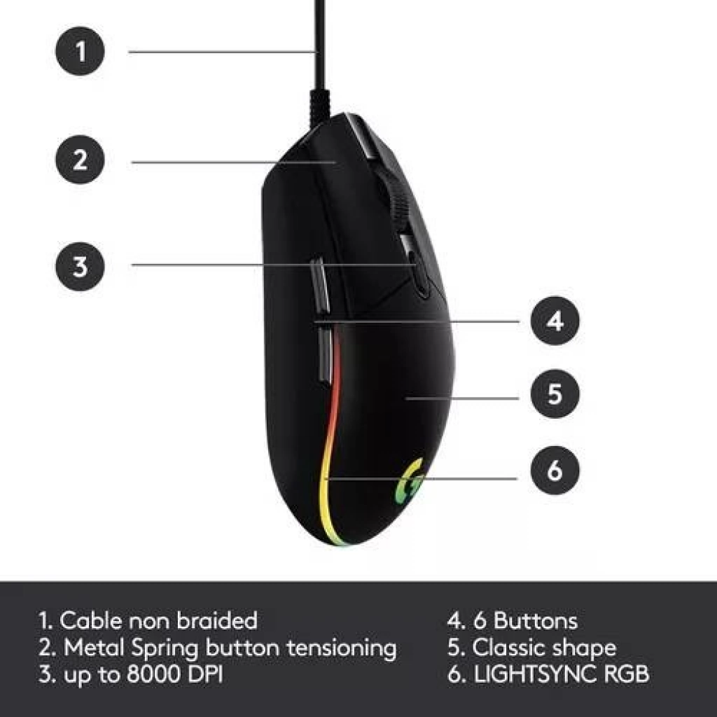 Logitech G203, Mouse Gaming Logitech, G203 LIGHTSYNC, Mouse RGB, Mouse 8000 DPI, Mouse programable, Mouse para juegos, Logitech G203 Negro, Mouse con cable, Periférico gaming, G203 LIGHTSYNC RGB, Mouse preciso, Gaming mouse